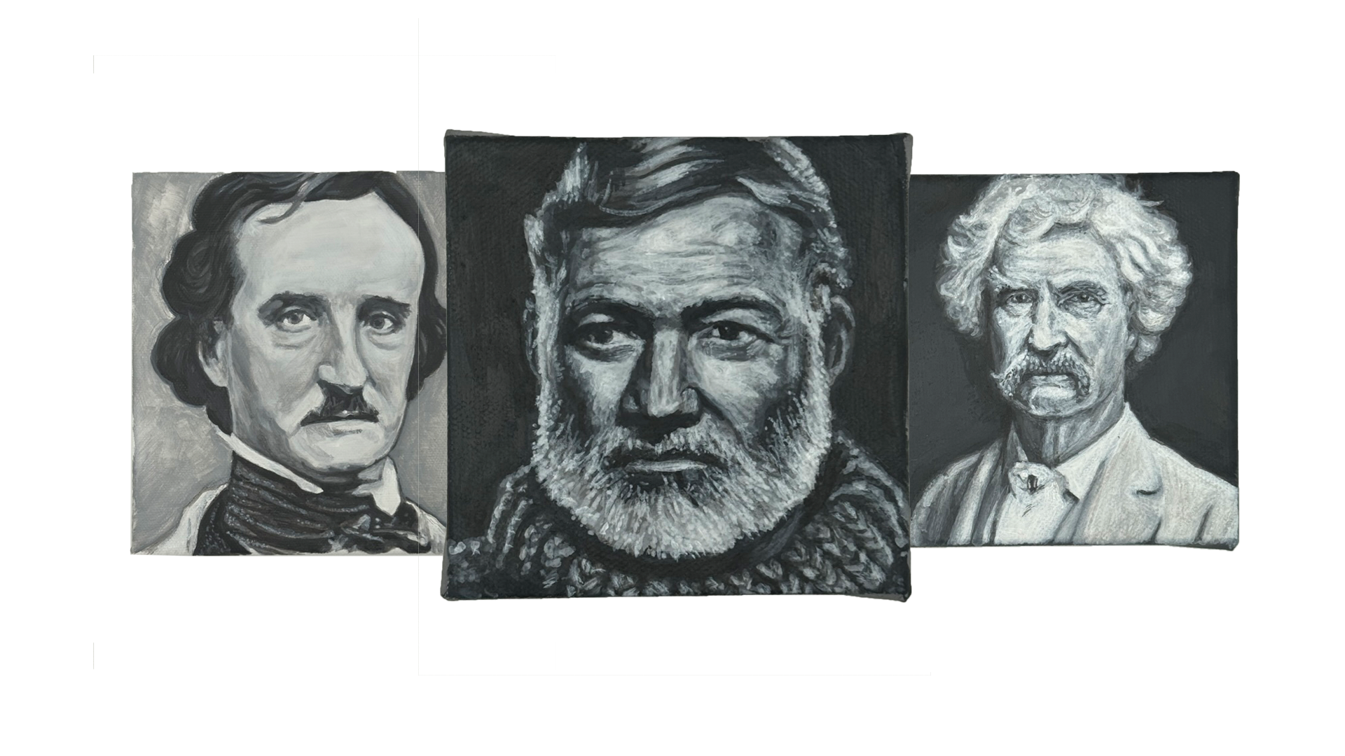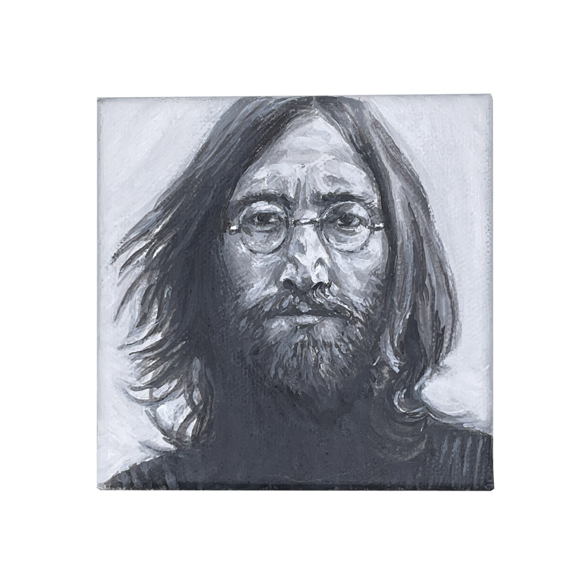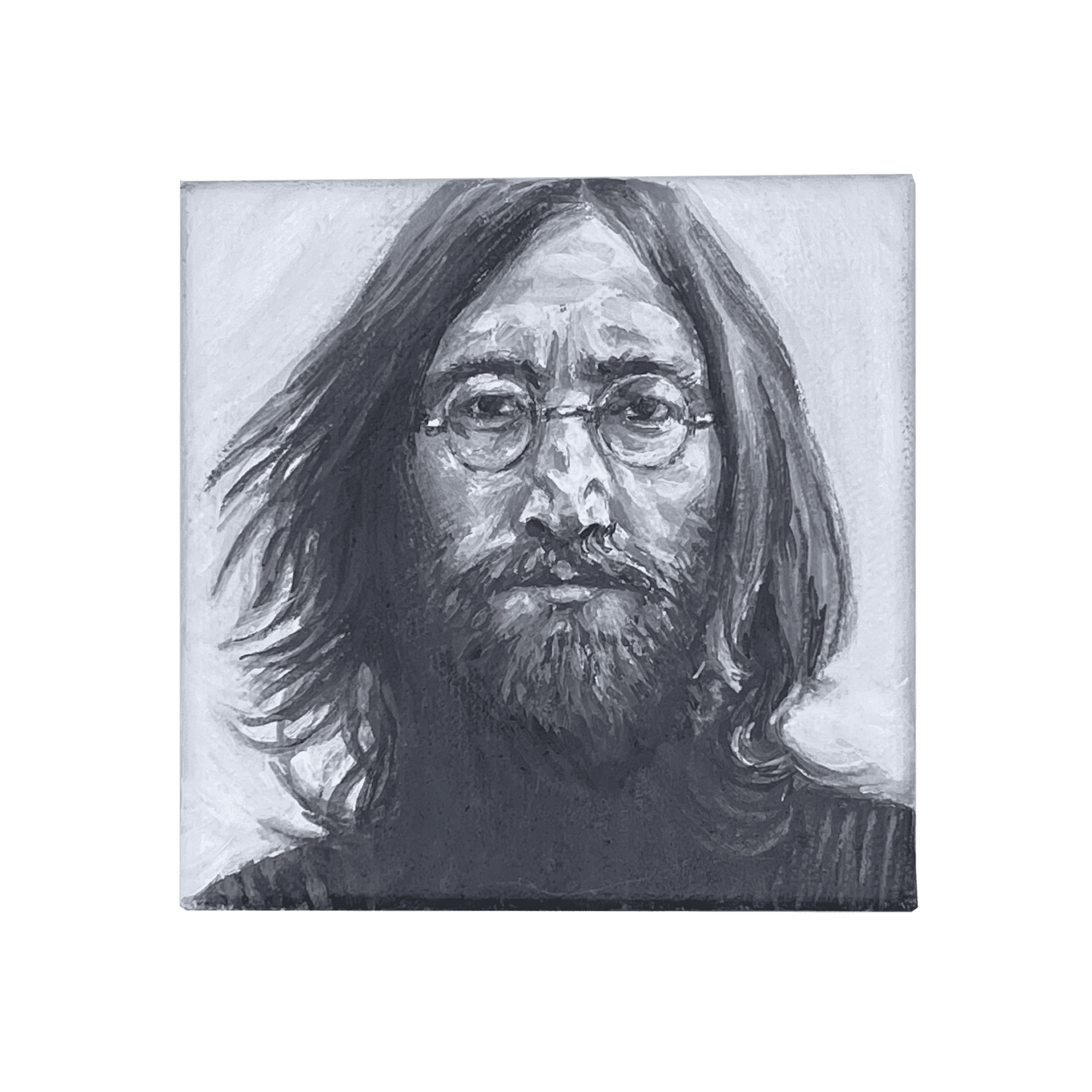 This collection honors musicians, writers, artists, and cultural figures whose work left a lasting mark. Painted in black and white acrylic, each portrait focuses on expression and presence, capturing the character behind the creativity.